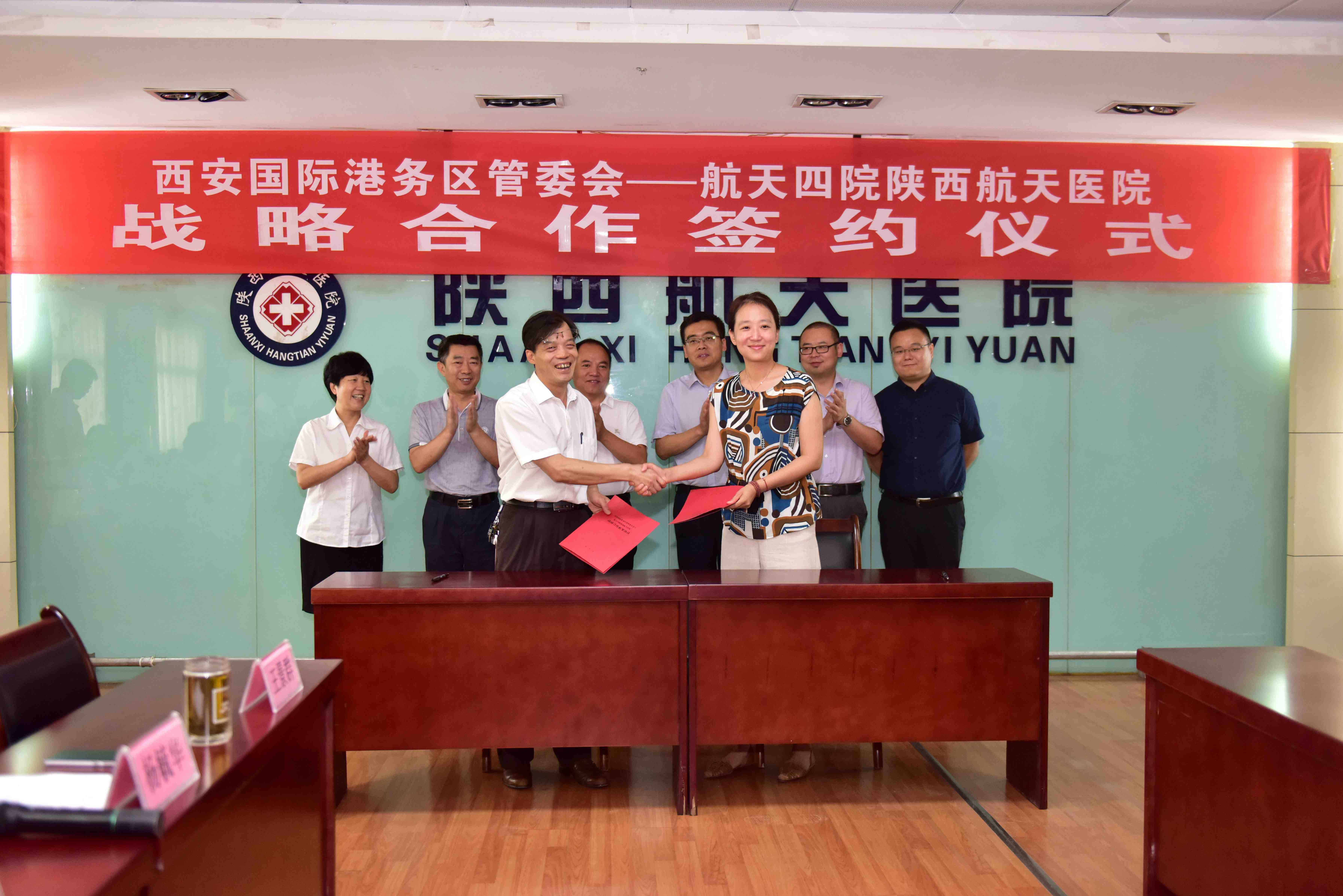 航天四院副院长王永杰、西安国际港务区管委会副主任苏国峰、四院行政基建保卫部部长沈显贵、港务区社会事业局副局长韩婷婷、社会事业局局长助理陈朝华,医院院长冯忠旗、党委书记杨毓华等班子成员、职能部门负责人出席了签约仪式。