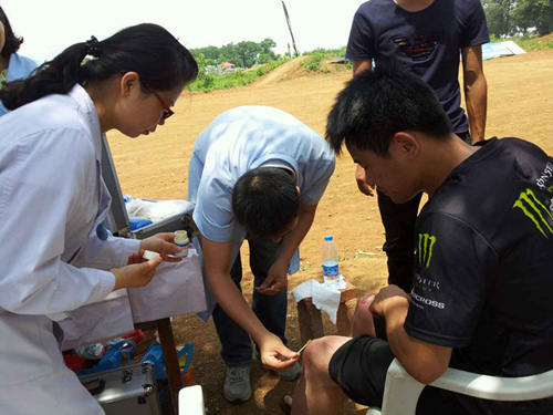 昨日,2015“航翔杯”陕西省越野摩托车公开赛在洪庆盛大开幕。为保障赛事医疗安全,确保伤病员得到及时有效救治,陕西航天医院派出2名急救医护人员及1辆救护车在现场指定位置随时待命。期间,共处理外伤9起,转运病员2起。医护人员们以高效灵活的处理能力、扎实娴熟的专业技术和敬业的工作态度,圆满完成了医疗保障任务。