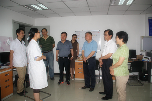冯忠旗院长等班子成员首先陪同王瑞强总经理等领导,深入临床科室和医技科室进行现场调研,王总与科室医护人员进行了亲切交流。随后,冯院长从医院基本情况、2015年工作、医院发展愿景三个方面进行了全面简要的汇报。