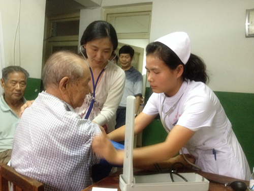 在抗日战争胜利70周年来临之际,为致敬抗战老兵,深入践行职工医院服务职工的宗旨,医院日前组建医疗小分队主动上门为四院15名抗战老同志进行健康体检,并提供了专业的健康咨询和预防保健服务。他们携带心电图机、血压测试仪、血糖仪等设备,辗转四院各小区及西安航天局,用实际行动表达对抗战老兵们的崇敬之情。