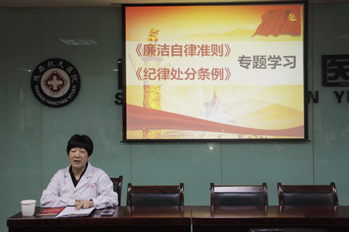 医院党委书记杨毓华随后进行了学习辅导,同时,对党员和党员领导干部提出具体要求,一是党委要履行全面从严治党主体责任,切实履行党章赋予的职责,在思想认识、责任担当、方法措施上跟上中央部署,真正把纪律严起来、执行到位。二是纪委要把监督执纪问责做深做细做实,要做遵守纪律的楷模,切实发挥带头作用,始终把纪律挺在前面,加大执纪监督力度。三是医院各党支部要加强对党纪法规的学习,增强执行的自觉性和坚定性。四是党员要坚持底线思维,认真贯彻落实“准则”和“条例”。