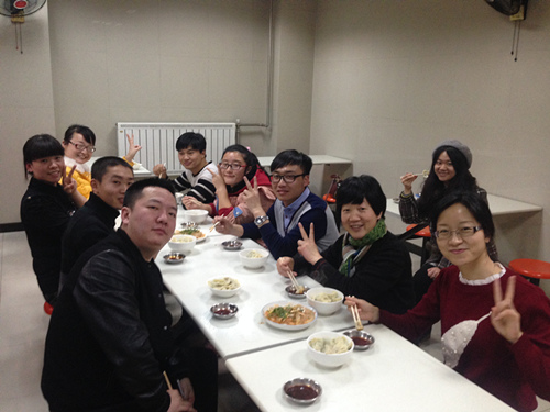 随后的饺子盛宴更是引得男女青年齐上阵,大家热热闹闹地一边包着饺子,一边交流着各自老家过冬至的风俗、包饺子的技巧,分工配合,气氛轻松活泼,欢声笑语不断。一个个饺子虽然形态各异,但都饱含着大家浓浓的祝福。