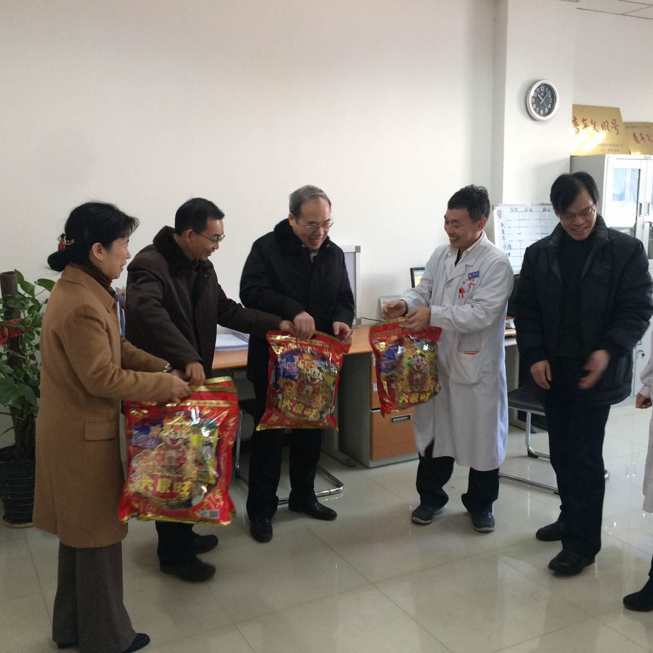羊随新风辞旧岁,猴携正气报新春。2月8日是大年初一,全国各地还沉浸在节日的温暖和喜庆中,陕西航天医院所有值班的医务人员却依旧坚守岗位,有条不紊地辛勤忙碌着。上午11点,四院党委书记张康助和院工会工作人员深入临床一线,看望慰问了坚守岗位的医务人员,向值班人员送上了节日礼物,并给大家送去了新春祝福和节日问候。