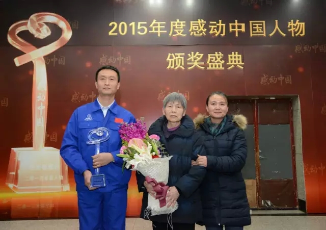 徐立平拿着奖杯和捧花走下台,转身将捧花献给了母亲,徐立平的爱人梁远珍对母亲说:“您是咱家的功臣。” (李淑姮 杨成/文 宿东/摄)